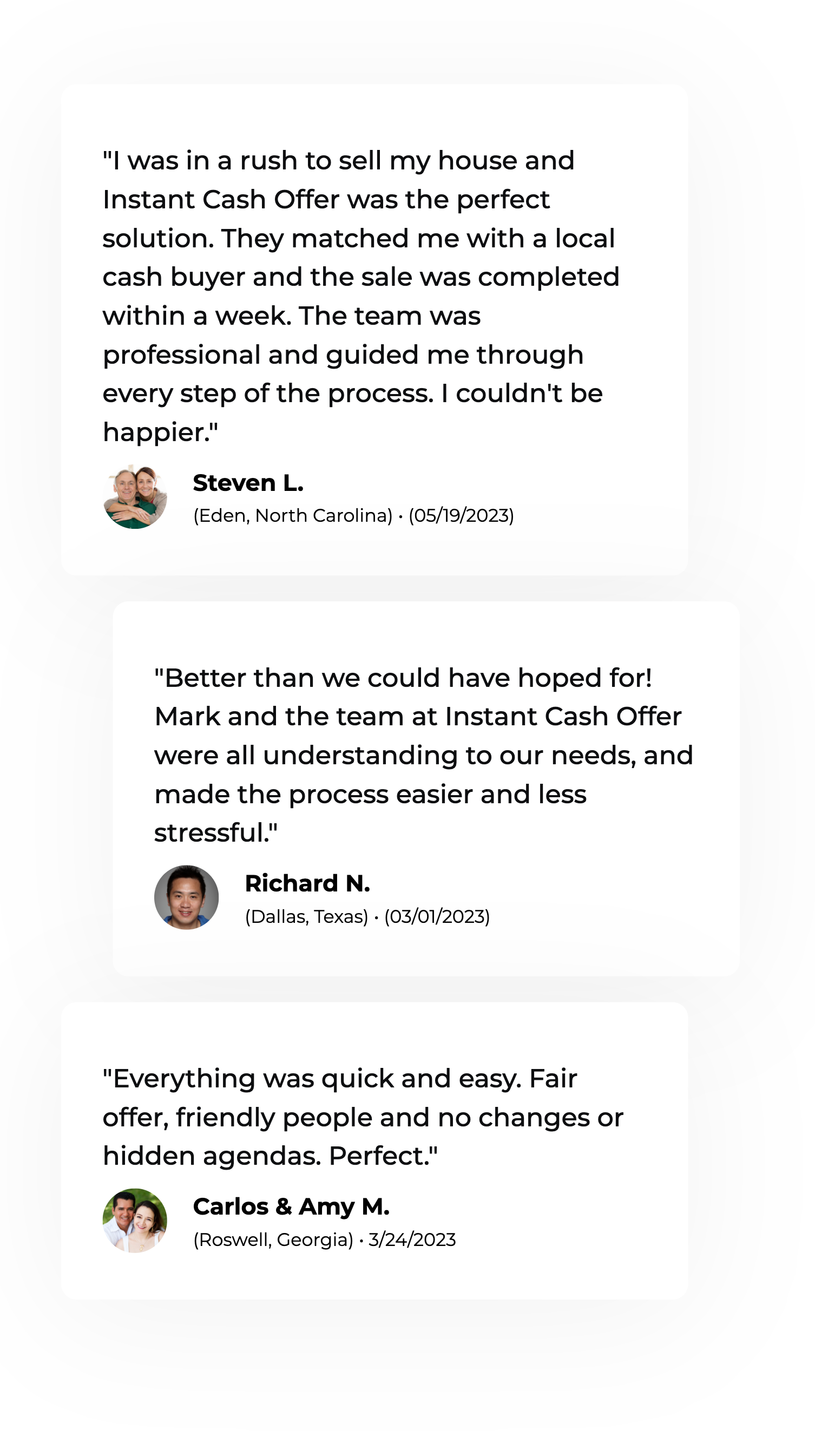 Instant Cash Offer is more than just a “We buy houses” company. We connect homeowners with our network of real estate investors in each market across the nation. Each of our investors is local and operates on the ground, so sellers can receive higher cash offers with faster closings.